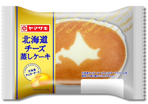 ケーキの上に北海道の形の焼き印が押してある、ヤマザキパンの「北海道チーズ蒸しケーキ」は、ご存知の方も多いと思います。ふわふわ食感でとても美味しいですよね。